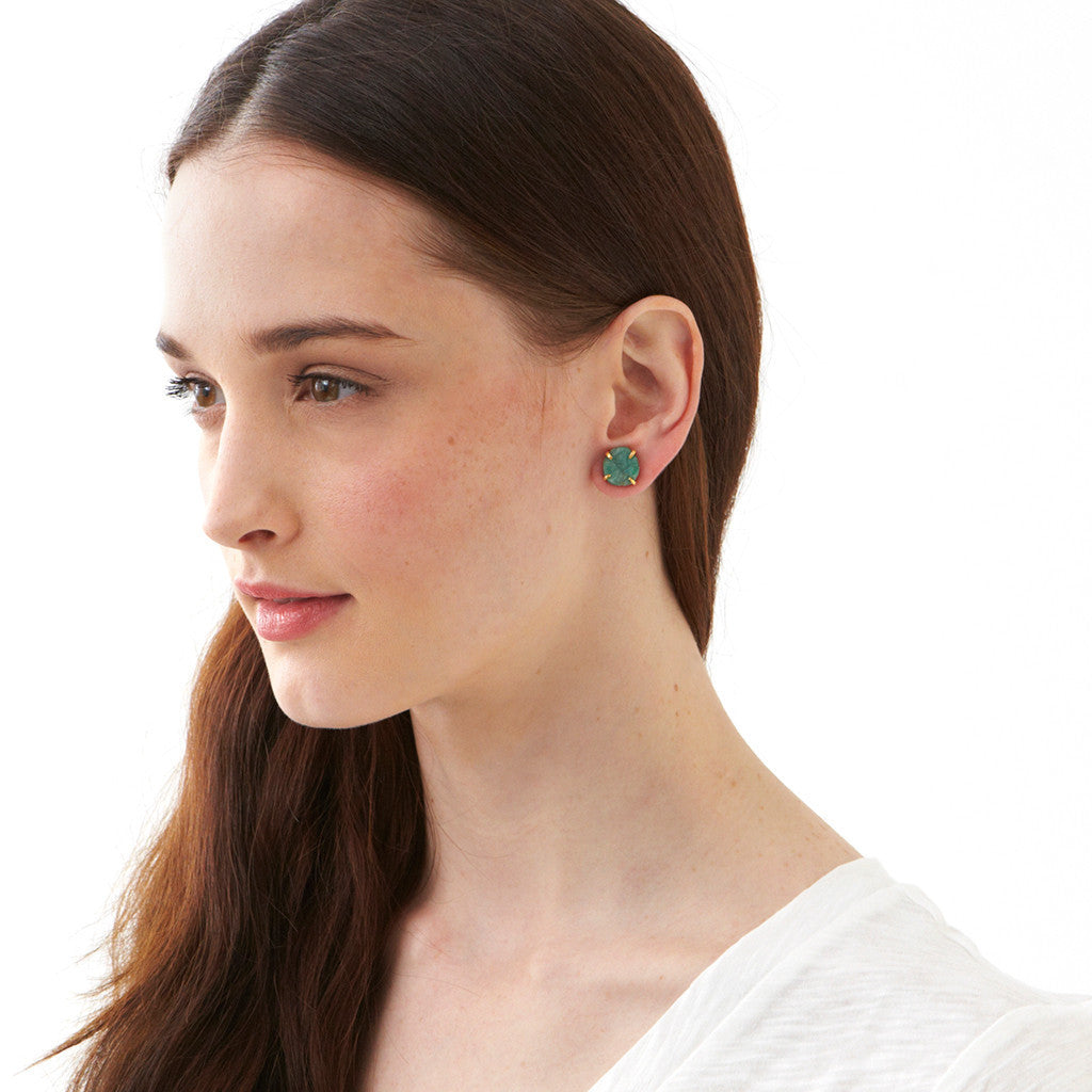These rough gemstone studs are designed by UK designer Pippa Small and handcrafted by Javid Noori for Turquoise Mountain. They are finished in simple gold-plated prong settings.